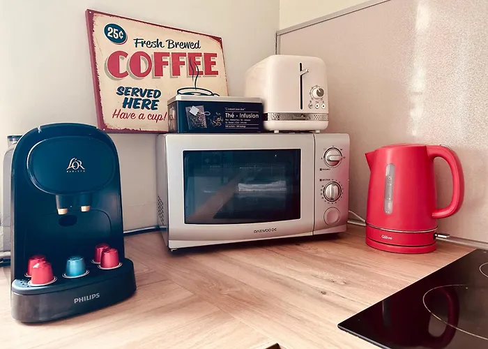 This 1-bedroom apartment provides a full kitchen, which is equipped with a microwave oven, a refrigerator, and kitchenware. The property also provides guests with coffee and tea making facilities. Offering Asian dishes, Zenazia is a 14-minute walk away. The 50 m² Cocon Urbain - Avec Parking Prive Gratuit Apartment is within easy reach of Carcassonne bus stop.